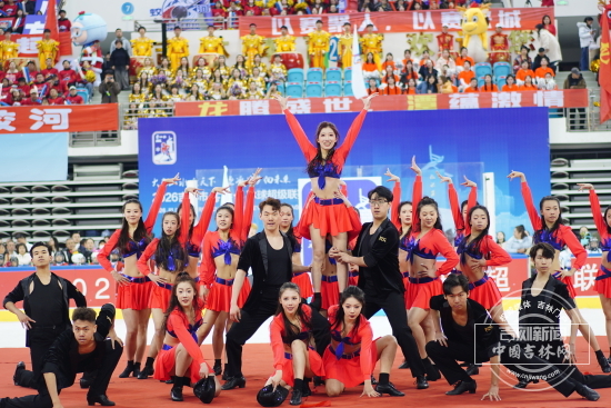 中场间隙,各县(市)区啦啦队轮番亮相,活力四射的舞姿、整齐划一的动作、青春洋溢的风采点燃全场氛围,为紧张赛事增添一抹灵动亮色,现场观众连连叫好。